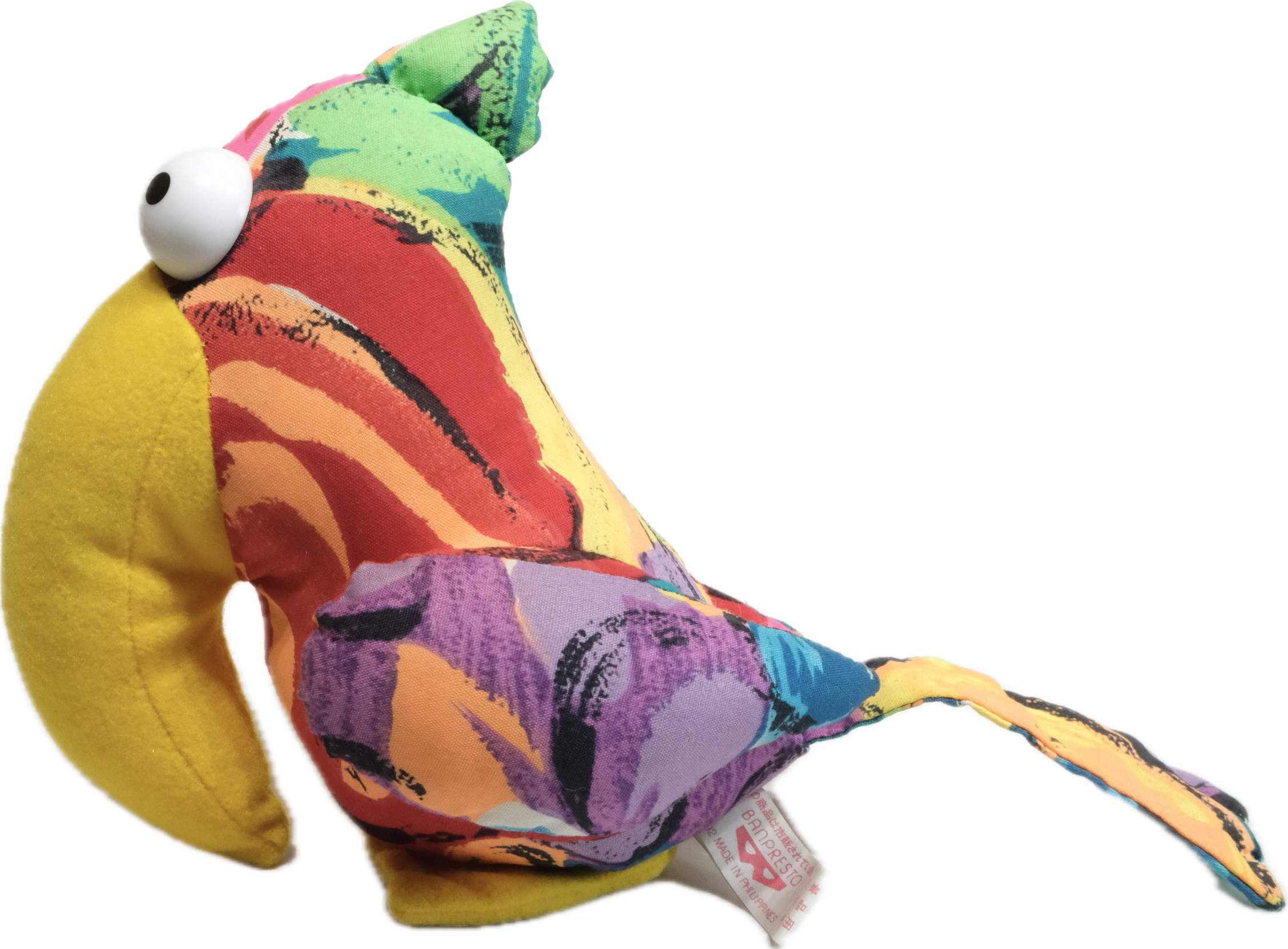 謎柄の布ボディとギョロ目、デカクチバシとキャラの濃くて面白い一品です。