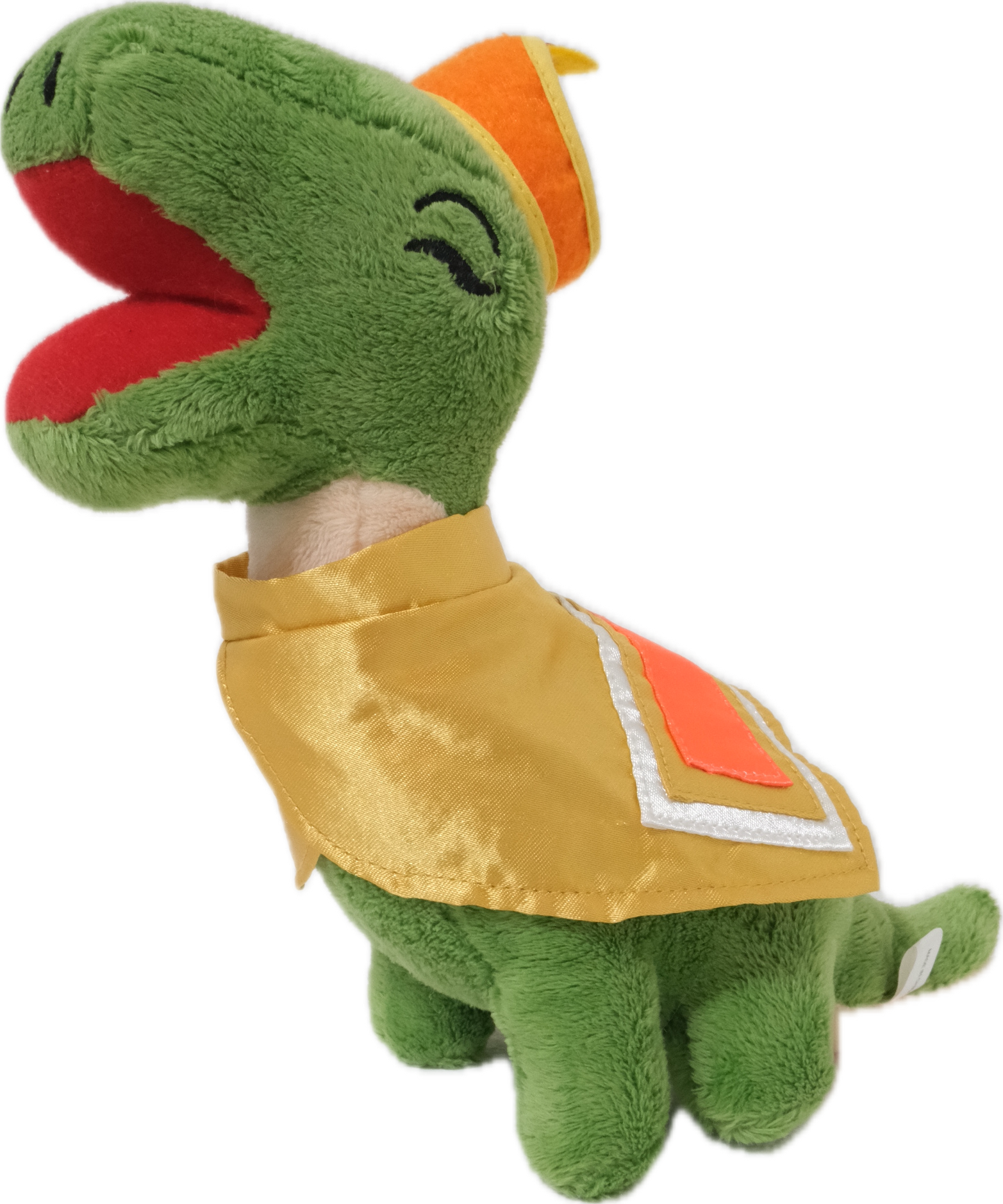 中国とか大陸っぽい衣装を纏った恐竜のぬいぐるみです。